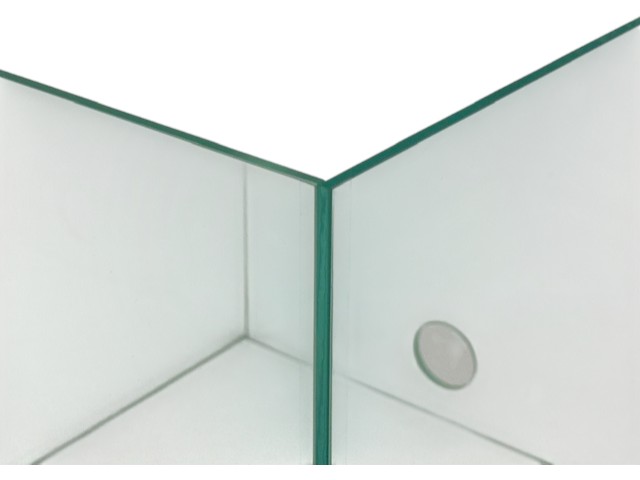 - Glasbecken Würfel mit 2x 27mm Bohrung, Bohrungsmittelpunkte auf Höhe 4cm.